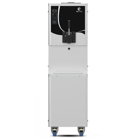 Frozen Yogurt ve Soft dondurma üretimi için kullanabileceğiniz ayaklı bir modeldir. Tek musluklu bir model olduğundan tek çeşit ürün verebilirsiniz.Makinenin sahip olduğu dişli sistem pompa sayesinde %80-90 kabarma sağlanır. Elektromekanik paneli sayesinde kullanımı çok pratiktir.Saatte 346 porsiyon (70gr) servis yapmanıza olanak sağlar.Hava soğutmalı bir modeldir.Mikserli oluşu sayesinde soft dondurma ve Frozen Yogurt malzemeniz sürekli homojen halde kalır.Makinenin içinde bulunan kompresör Bristol markadır.Çevre duyarlılığımıza bir örnek olarak makinelerimizde yüksek verimli su kondenserleri kullanılmaktadır.Bu kondenserler çevre standartlarına uymak için kullanılan su ve gaz miktarını azaltır. 2,1 kw'lık enerji tüketimi ile sınıfının çok altında enerji sarfeder. Soğutma sistemleri en sıcak havalarda bile dondurmanın doğru ısıda olmasını sağlayacak şekilde dizayn edilmiştir.