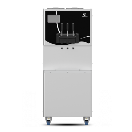 Frozen yogurt ve Soft dondurma üretimi için kullanabileceğiniz ayaklı bir modeldir. Üç musluklu bir model olduğundan, 2+1 çeşit ürün verebilirsiniz.Makinenin sahip olduğu dişli sistem pompa sayesinde %80-90 kabarma sağlanır. Dijital paneli sayesinde kullanımı çok pratiktir.Saatte 665 porsiyon (70gr) servis yapmanıza olanak sağlar.Hava soğutmalı bir modeldir.Mikserli oluşu sayesinde soft dondurma ve Frozen Yogurt malzemeniz sürekli homojen halde kalır.Makinenin içinde bulunan kompresör Dorin markadır.Çevre duyarlılığımıza bir örnek olarak makinelerimizde yüksek verimli su kondenserleri kullanılmaktadır.Bu kondenserler çevre standartlarına uymak için kullanılan su ve gaz miktarını azaltır. 4,2 kw'lık enerji tüketimi ile sınıfının çok altında enerji sarfeder. Soğutma sistemleri en sıcak havalarda bile dondurmanın doğru ısıda olmasını sağlayacak şekilde dizayn edilmiştir.