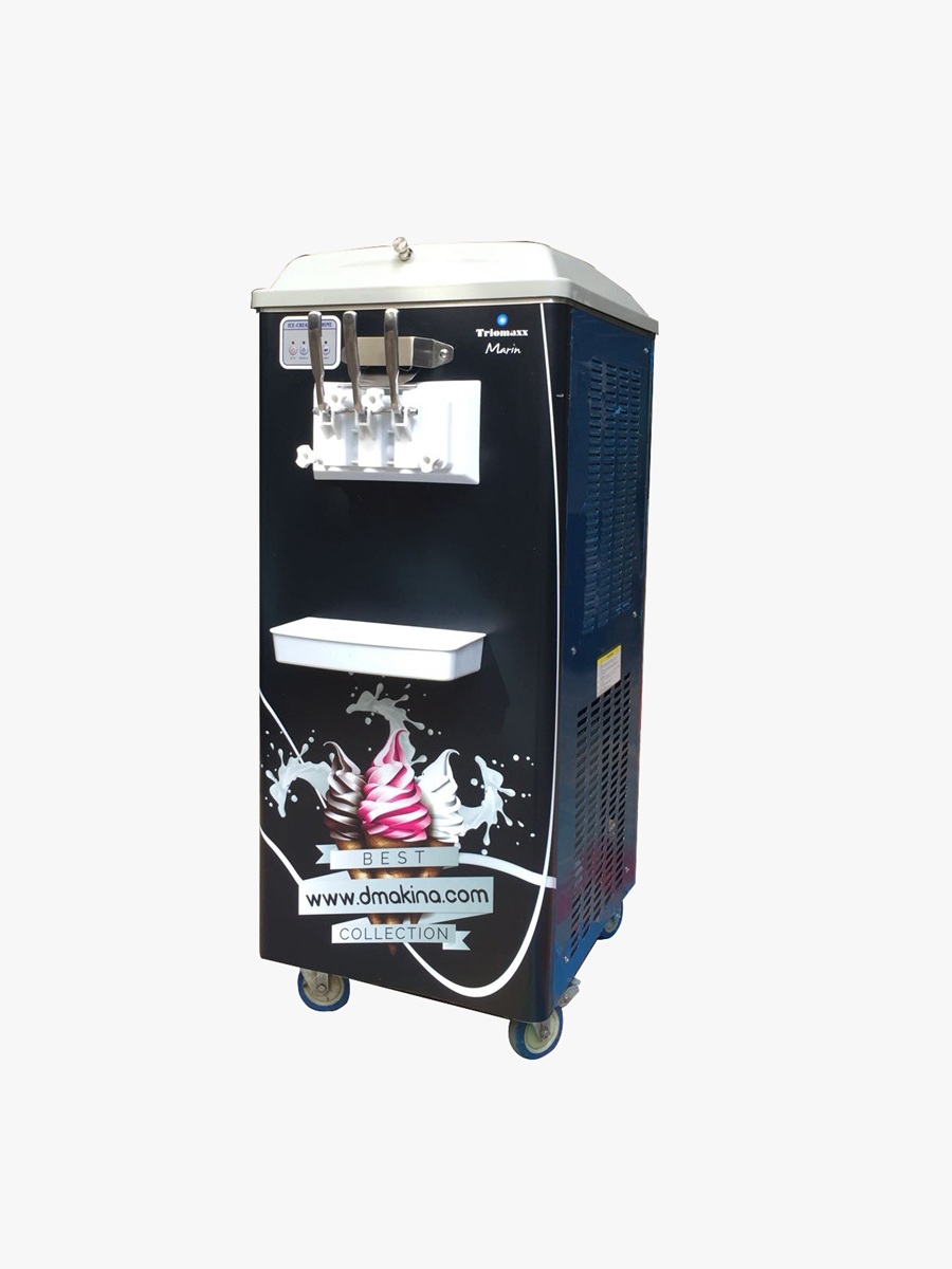 Üç musluklu, çift tanklı, hava pompalı Triomax - Marin modelimizle aynı anda sade,kakaolu ve karışık Soft Dondurma veya Frozen Yogurt yapabilirsiniz.Triomax Marin modeli Türkiye'nin birçok şehrinde Avm'ler ve yaya trafiğinin çok yoğun olduğu noktalarda kullanılmaktadır. Aynı zamanda fuarlarda Triomax - Marin modeli ile bedava Soft dondurma ve Frozen Yogurt dağıtılmaktadır. Triomax - Marin - Soft dondurma makinelerinde ana soğutma kompresorü olarak Fransız TECUMSEH 'dir.